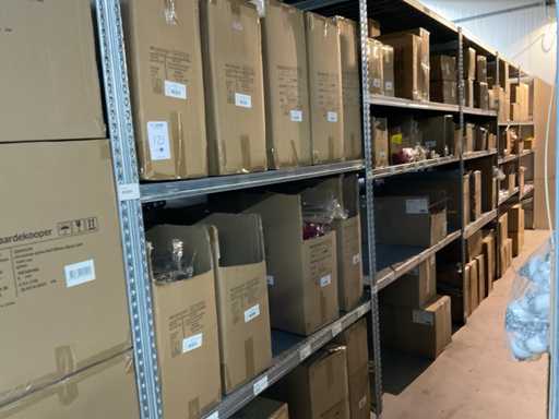Let op kavels liggen op 1ste verdieping, enkel met trap bereikbaar, goederen met lift max 400 kilo of per pallet met vorkheftruck naar beneden te halen.