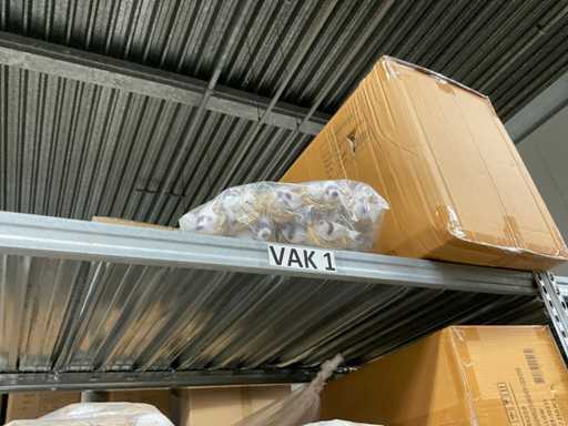 Let op kavels liggen op 1ste verdieping, enkel met trap bereikbaar, goederen met lift max 400 kilo of per pallet met vorkheftruck naar beneden te halen.