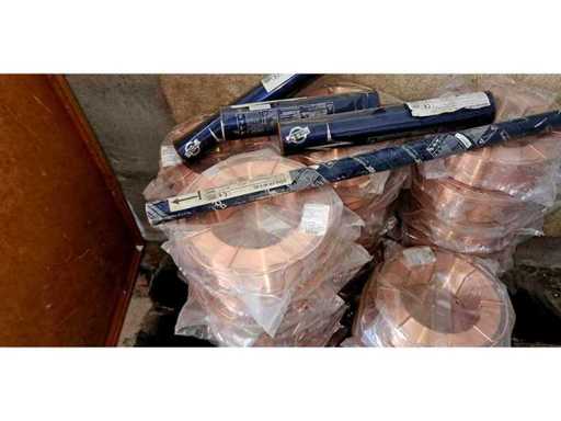 een partij van 36 rollen hoogwaardige Böhler Diamondspark Ni1 RC-SR naadloze gevulde lasdraad (seamless flux cored wire), aangevuld met een set laselektroden.