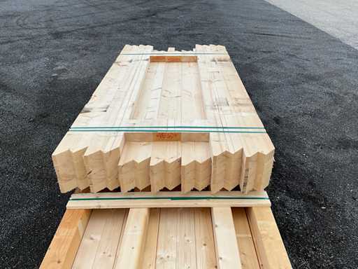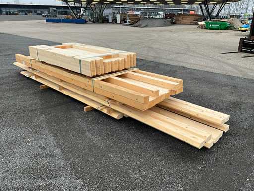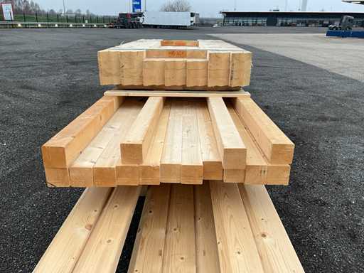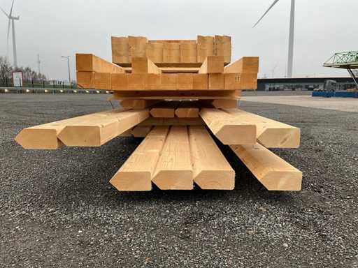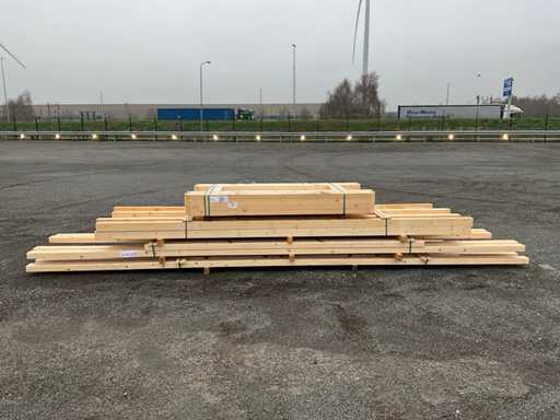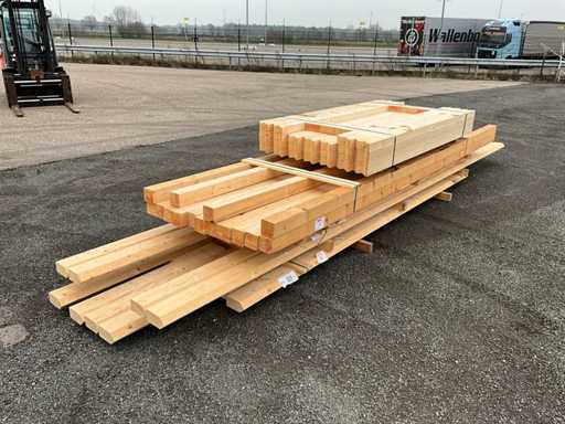 Diverse afmetingen lengtes tussen 2100-5700mm, 15x 94x94x4200, 25x balk 155x55x2170 gekeept, partij nokgordingen,