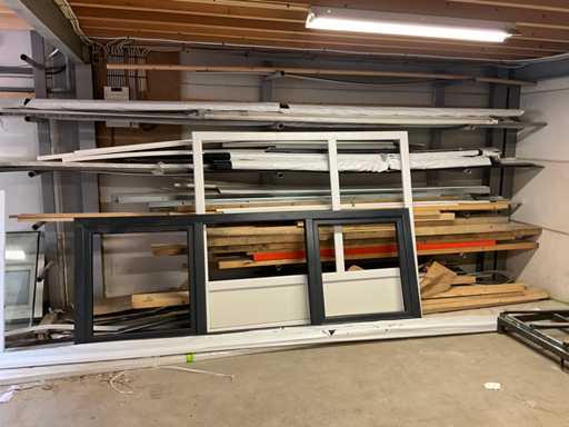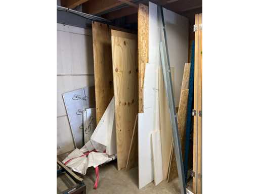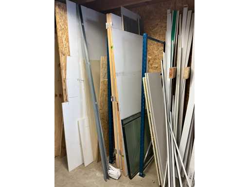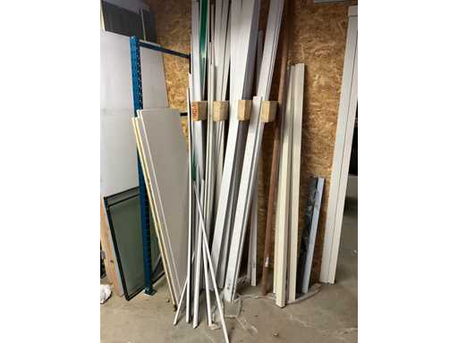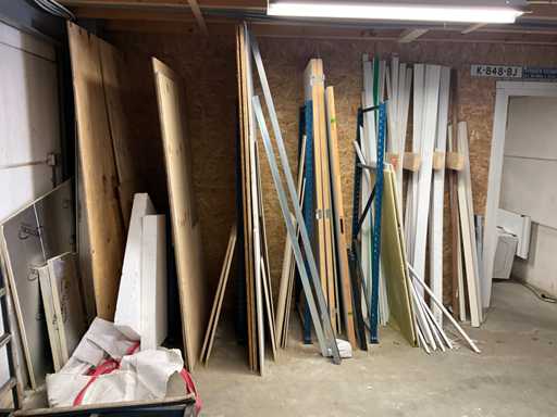 Waaronder balken; planken; platen; panelen; deuren; plinten; kozijnen etc. Lengtes tot circa. 600 cm
