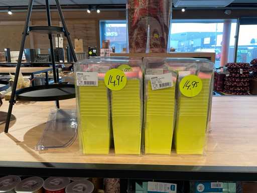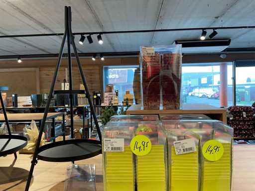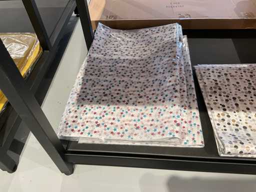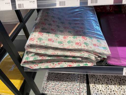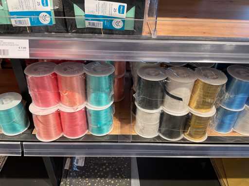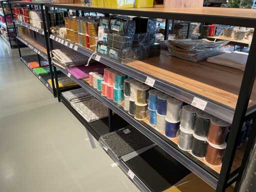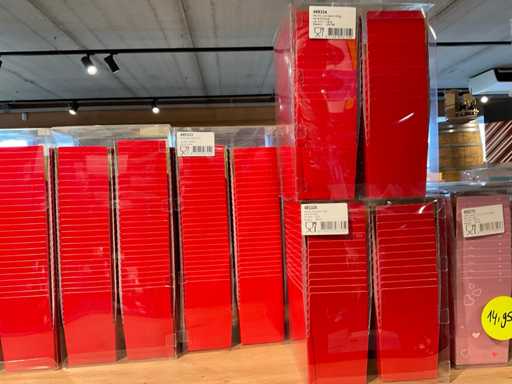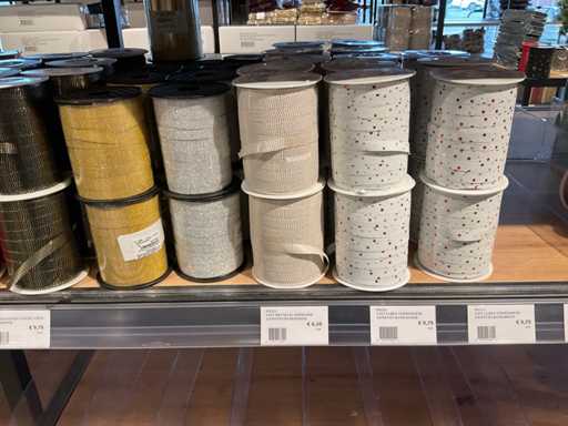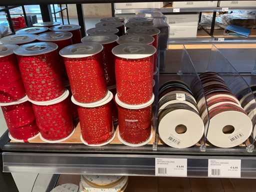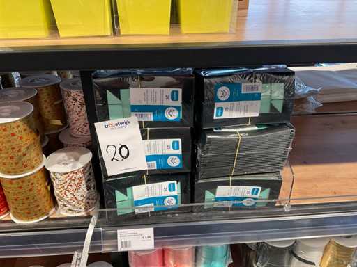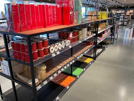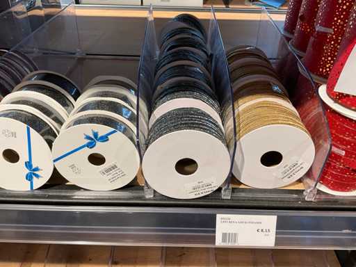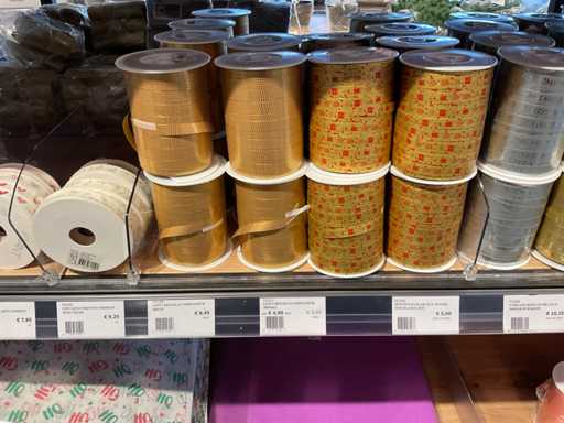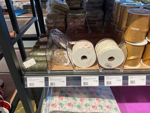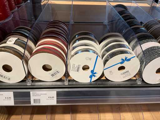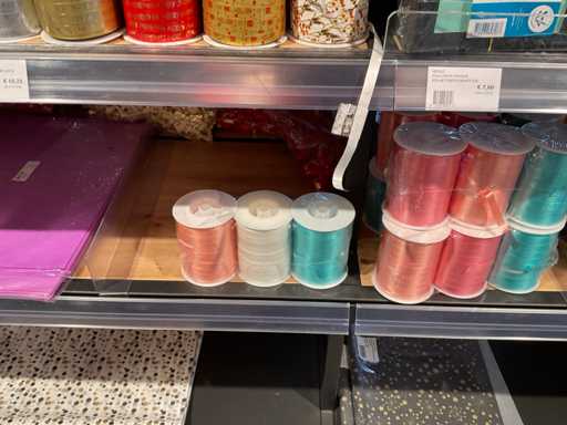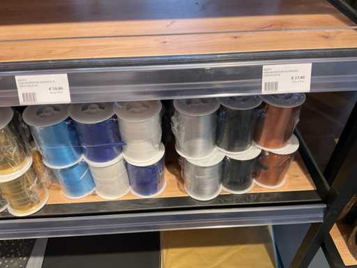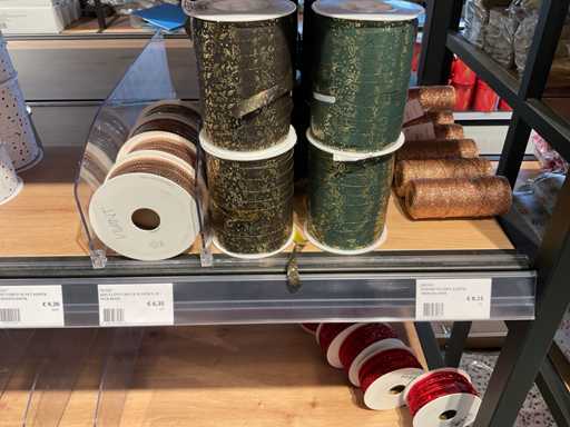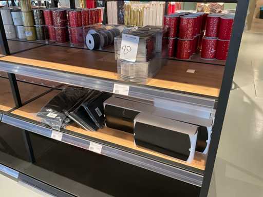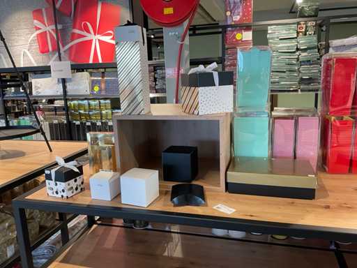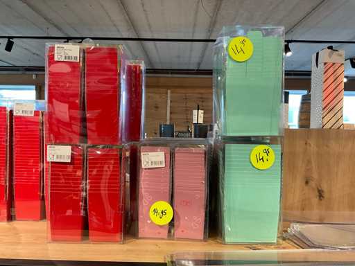 Bestaande uit kaarsen, tasjes, zakken, strikken, inpakdoeken, gondeldozel, sierlinten, zijdevleipapier, ballotin doosjes. Verschillende maten en kleuren. Exclusief Presentatiemeubel.