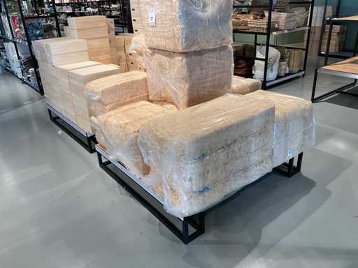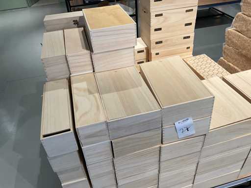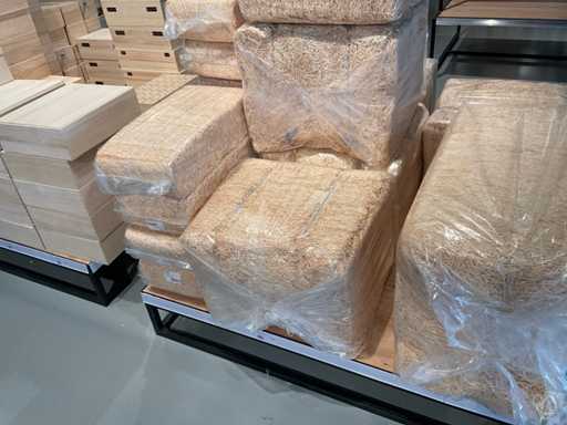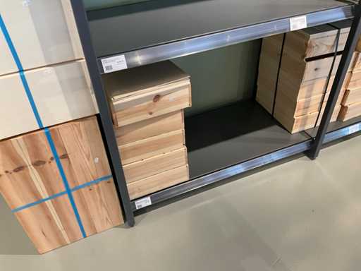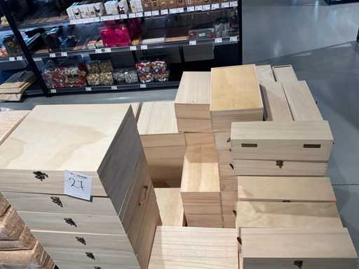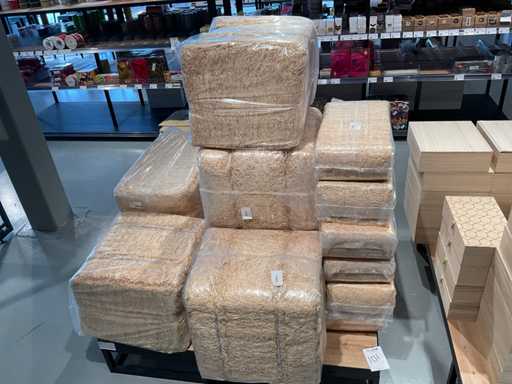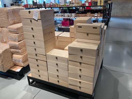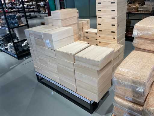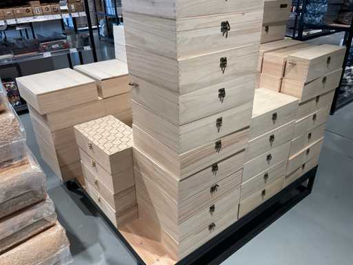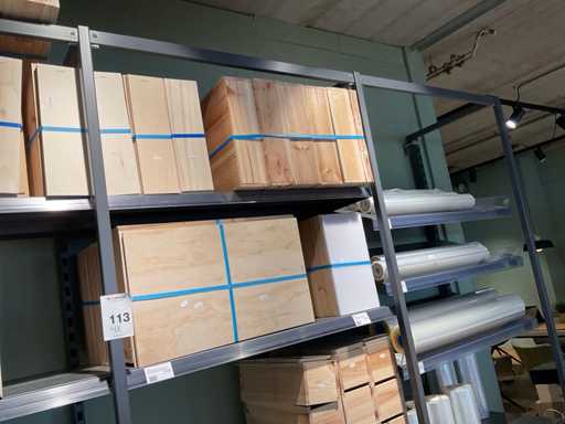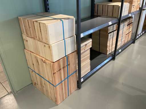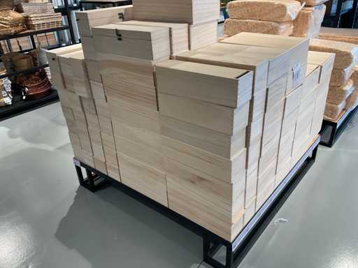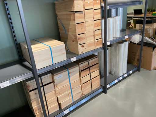 Bestaande uit, wijnkistjes, opvulmateriaal, inpakfolie. Exclusief Presentatiemeubel.
