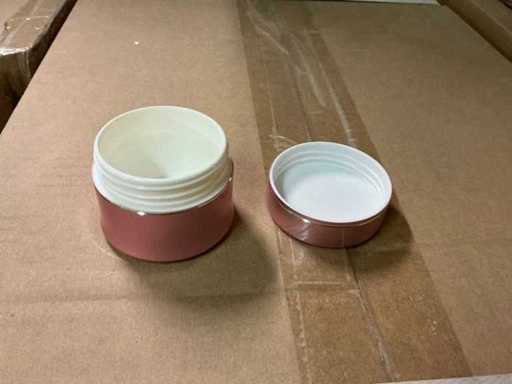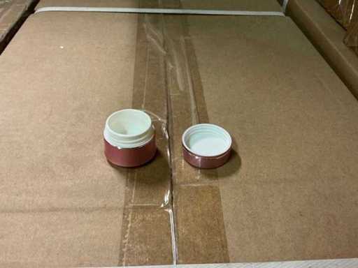 Betreft cosmeticapotjes met afdichtschijfjes, ondoorzichtige (massieve) deksels, in diverse volumes (ml), verdeeld over 5 pallets.