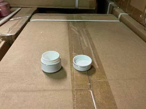 Betreft cosmeticapotjes met afdichtschijfjes, ondoorzichtige (massieve) deksels, in diverse volumes (ml), verdeeld over 6 pallets.