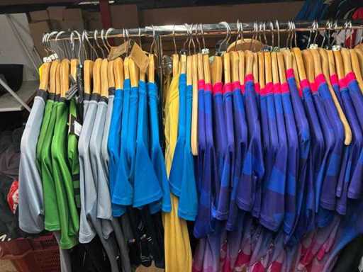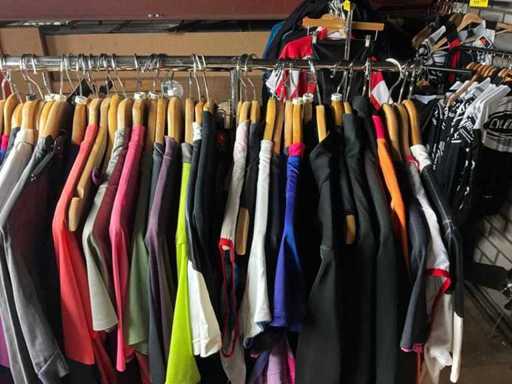 Diverse merken fietskleding. Mix van dames en heren. Verschillende maten en soorten. Inclusief rek.