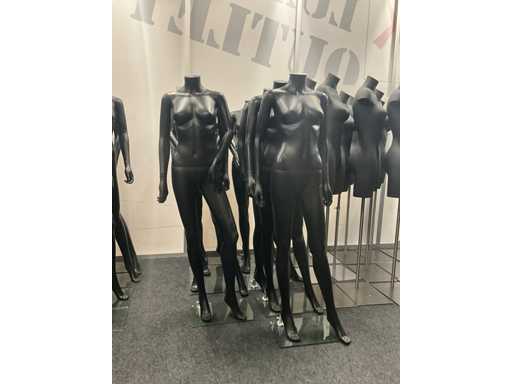 9 paspoppen op glazen voet.