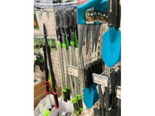 Waaronder snoeischaren, tuingereedschap, sproeiers, darmen.