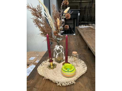 Waaronder kaarsenhouders, kaarsen, asbakken, onderleggers, droogbloemen .