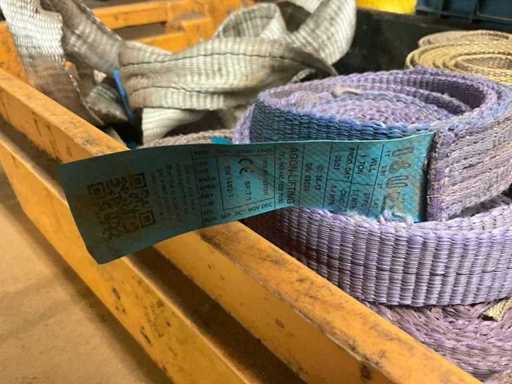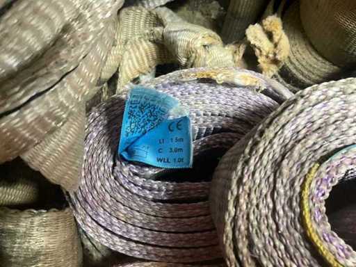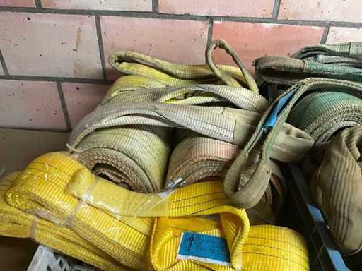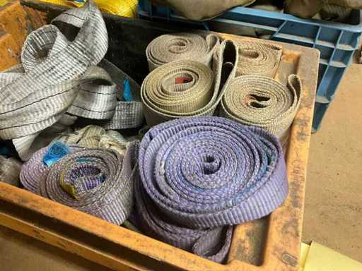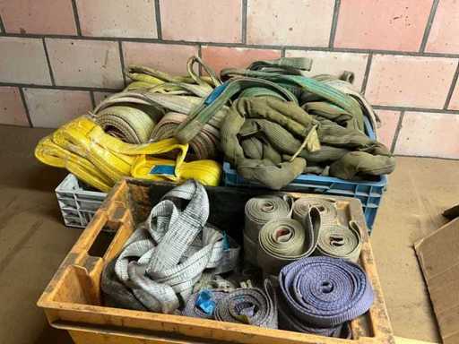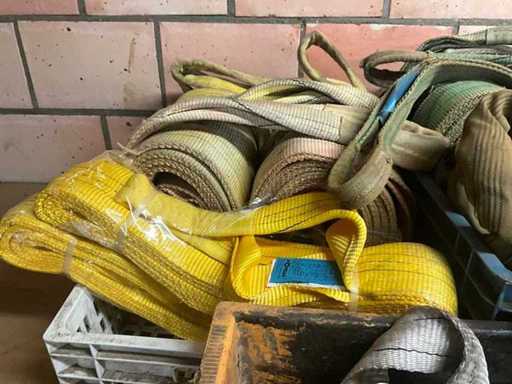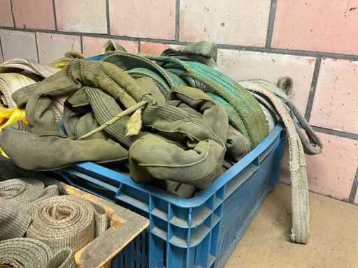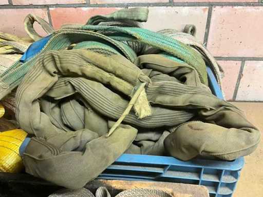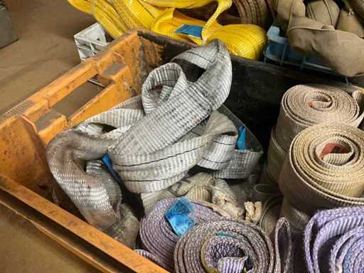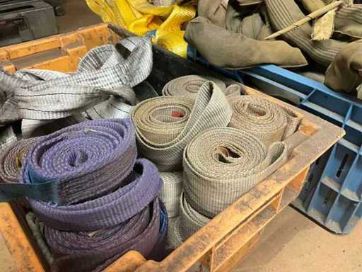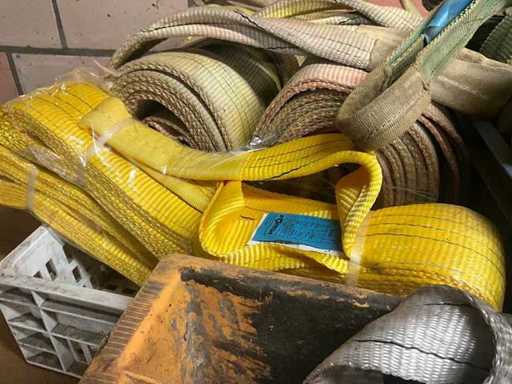 Partij diverse hijsbanden (circa 35 stuks) en toebehoren