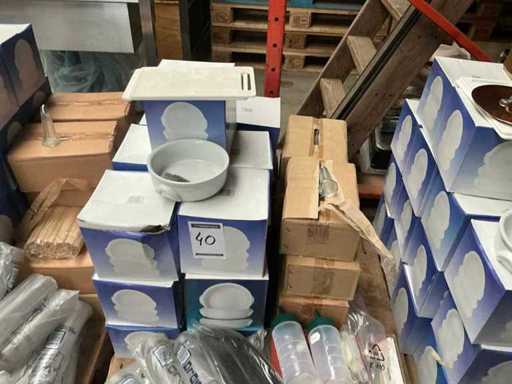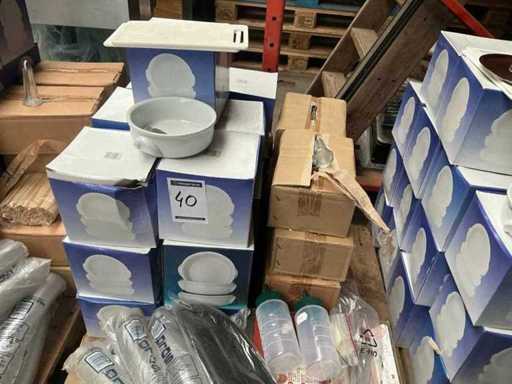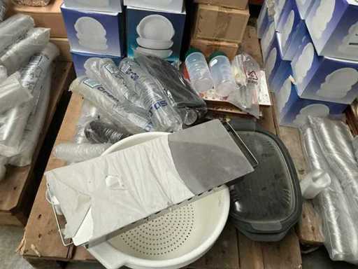 Waaronder divers servies/ gestapeld op 2 pallets/ pallets niet inbegrepen