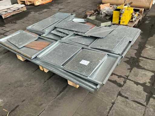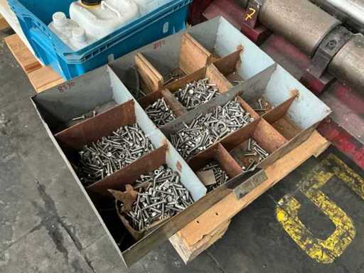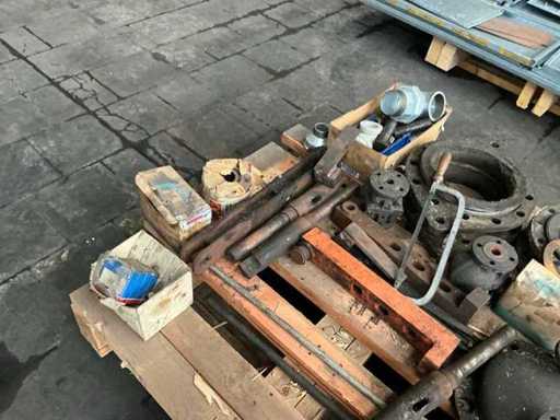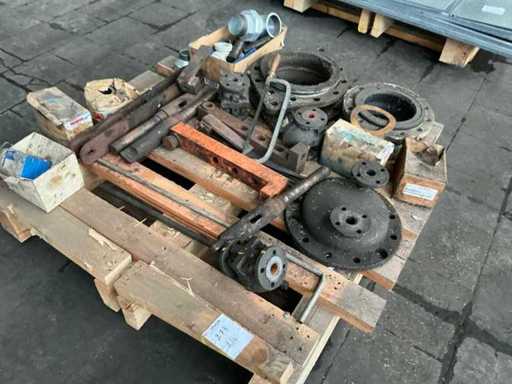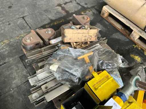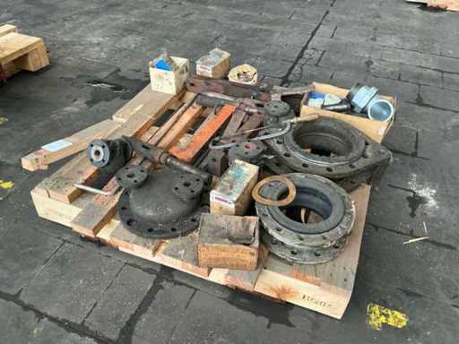 waaronder RVS bouten, flenzen, SKF-kogellagers, hydraulische slangen, kunststof doeken, ….. op 6 palletten