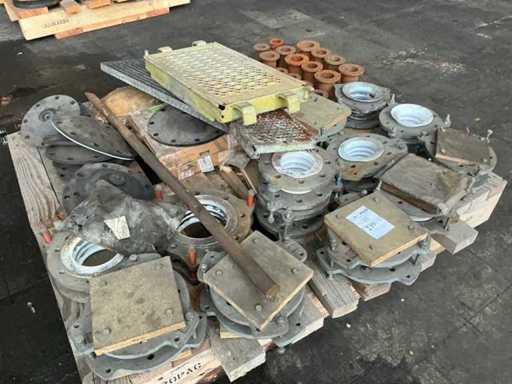 waaronder flenzen, waterpomp, bouten, afsluiters, ….. op 6 palletten