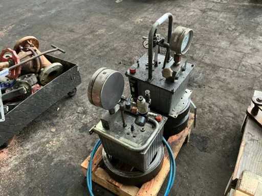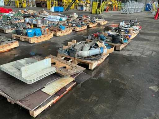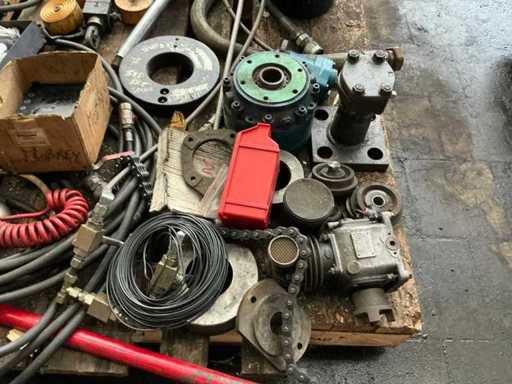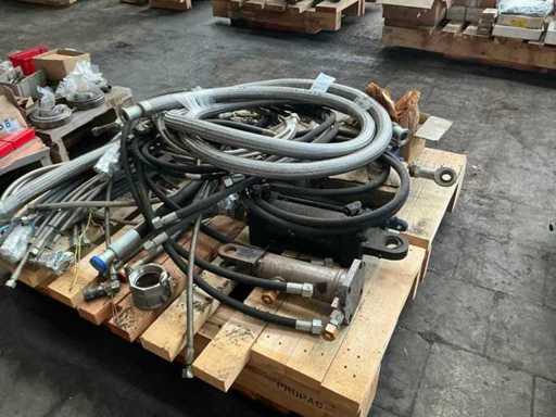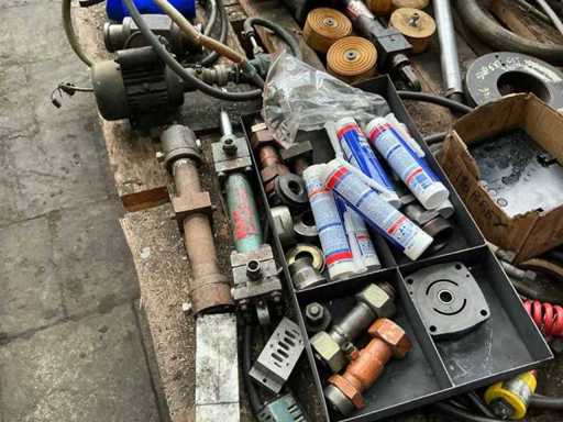 waaronder cilinders, slangen, afsluiters, hydraulische aggregaten, bouten, hydraulische onderdelen, ….. op 8 palletten