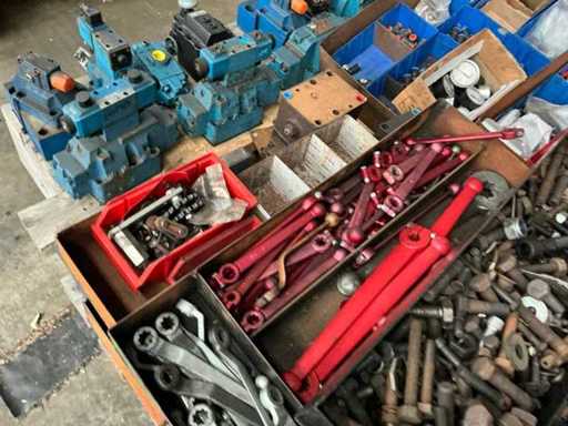 waaronder afsluiters, meters, metaalfrezen, hydrauliek, …. op 3 palletten