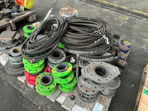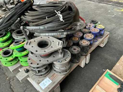 waaronder flenzen, dichtingen, V-snaren, afsluiters, …. op 3 palletten