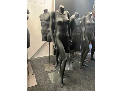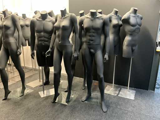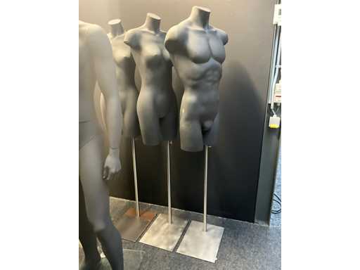 Waaronder 5 volledige paspoppen (3x dames en 2x heren) op glazen voet, compleet met 5 diverse bustes op staander.
