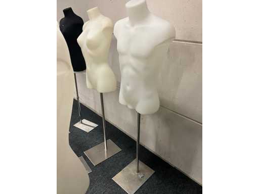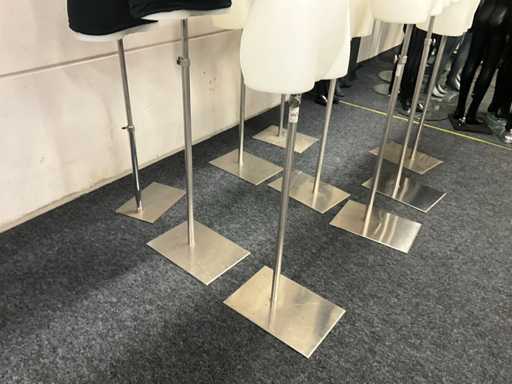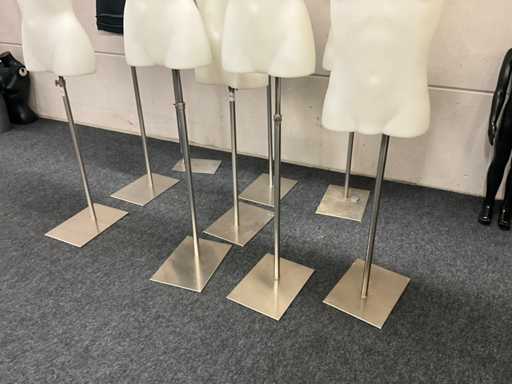 9 paspoppen op staander, waarvan bustes 7x dames en 2x heren.