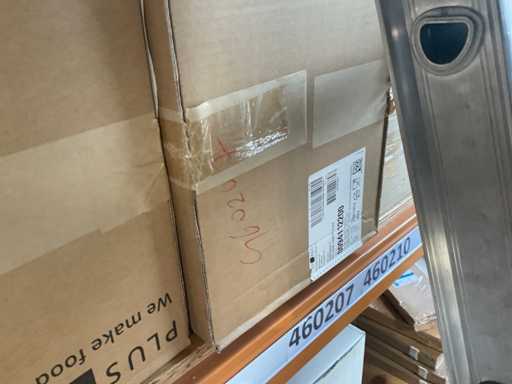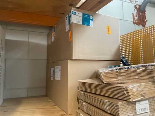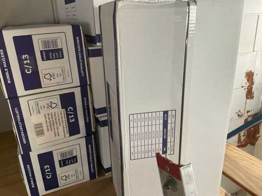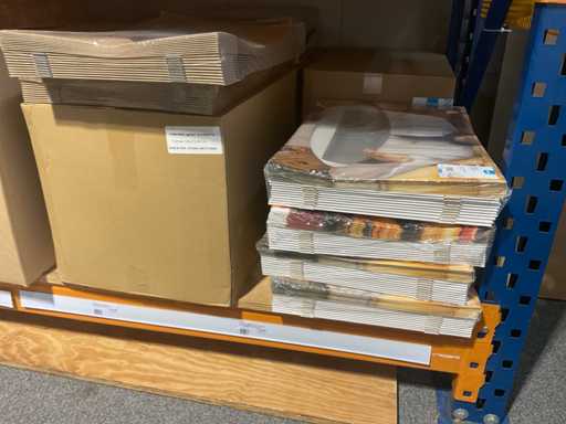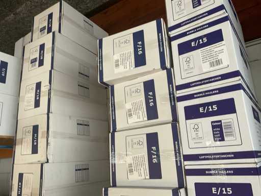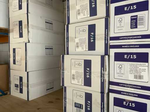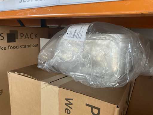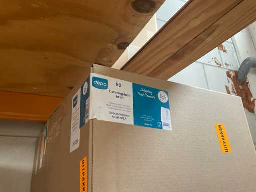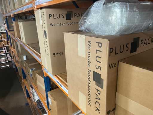 Partij verschillende verpakkingsmaterialen, waaronder bubbelenveloppen, bakjes, cateringdozen etc. Om een goed beeld te krijgen raden wij aan om gebruik te maken van de kijkdag. De koper dient zelf de goederen uit de stelling te halen. Betreft enkel de inhoud van het meest rechter stellingdeel. Exclusief stelling