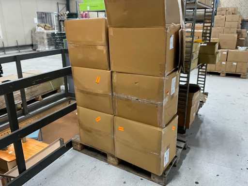 Let op kavels liggen op 1ste verdieping, enkel met trap bereikbaar, goederen met lift max 400 kilo of per pallet met vorkheftruck naar beneden te halen.