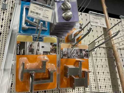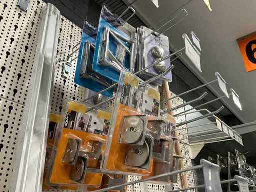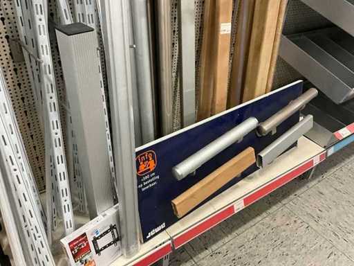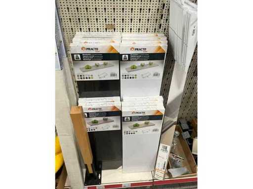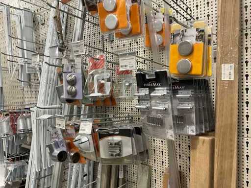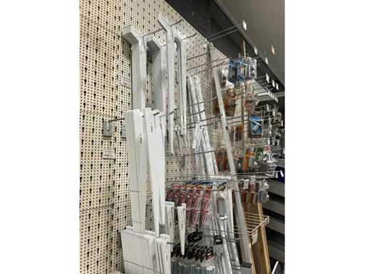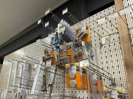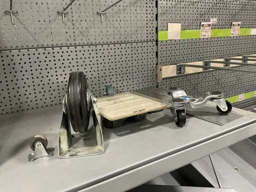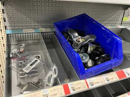 Waaronder 13x wandtablet, 2x kruiwagenwiel, diverse plankhouders, wielen en diversen.
