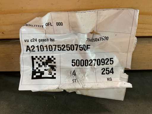 4x vuren balken geschaafd, 750 x 25 x 7,5cm dik.