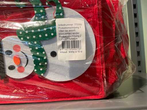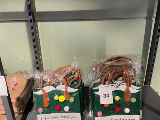 Inhoud stelling, bestaande uit vilten, papieren tassen, thema kerst. Exclusief stelling.