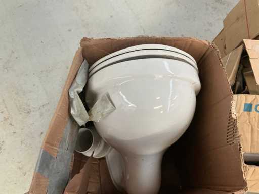 Bestaande uit: 3x kunststof doorspoelbak, porseleinen WC en handenwasser