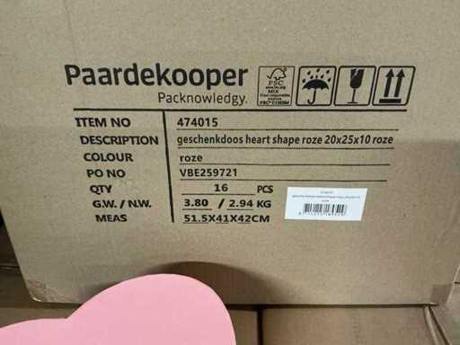 Partij geschenkdozen heart shape roze 20x25x10 roze (144x)