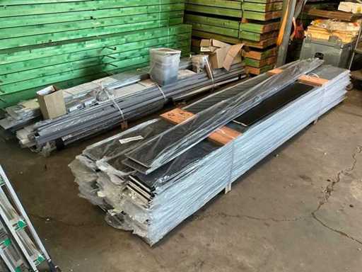 Zijnde 106 planken/latten flush 165 mm, elk 3 lpm lang, kleur black,