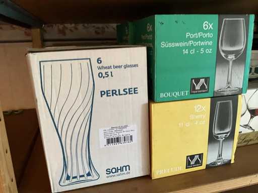 Partij glaswerk in doos