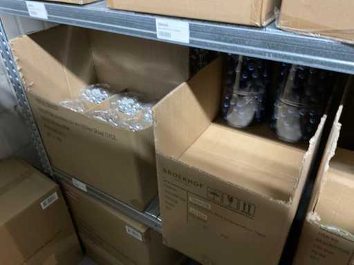 Let op kavels liggen op 1ste verdieping, enkel met trap bereikbaar, goederen met lift max 400 kilo of per pallet met vorkheftruck naar beneden te halen.
