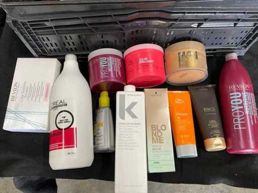 Partij haarverzorgingsproducten in 1 krat, exclusief krat