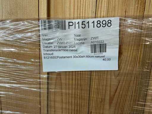 Partij Houten Postamenten 30x30xH60cm naturel (40x)