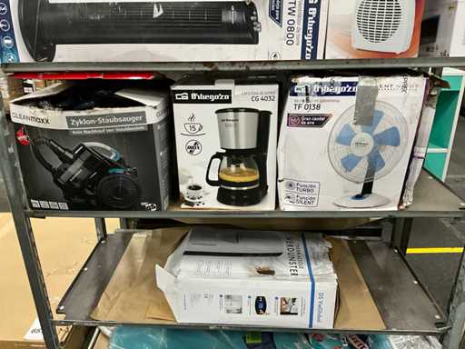 Waaronder: Orbegozo Cr 5029 ventilator, Orbegozo CG 4032 koffiemachine, Leifheit strijkplank, etc; Deense kar niet inbegrepen