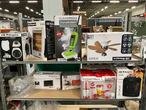 Waaronder: Cleanmaxx stoomreiniger, Thomson antenne, CP 15075 N ventilator, etc; Deense kar niet inbegrepen
