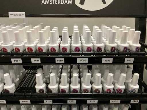 Bestaande uit: I AM By Bo Soak Off 15ml; diverse kleuren; inclusief verrijdbare stelling H192xB95xD34cm