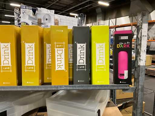 Partij iDrink bekers en kunststof opbergbakken