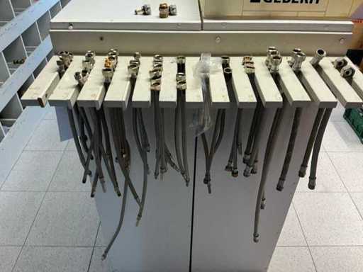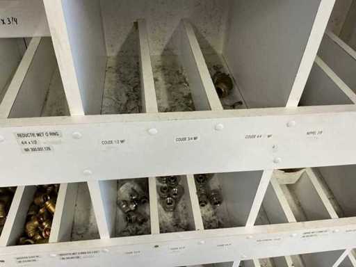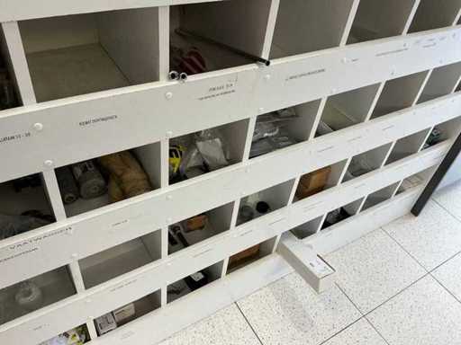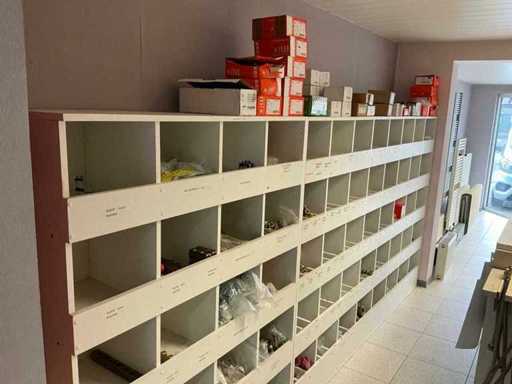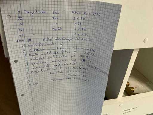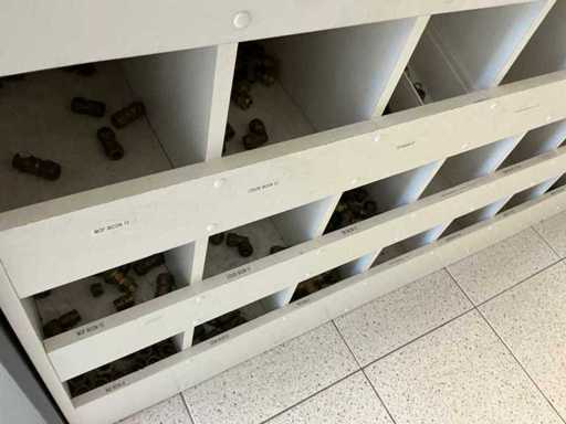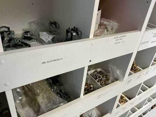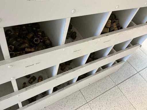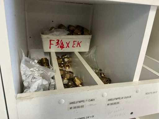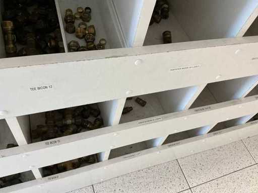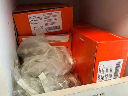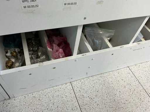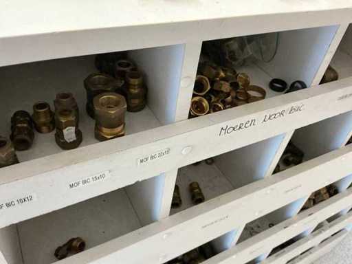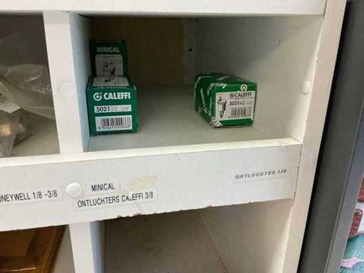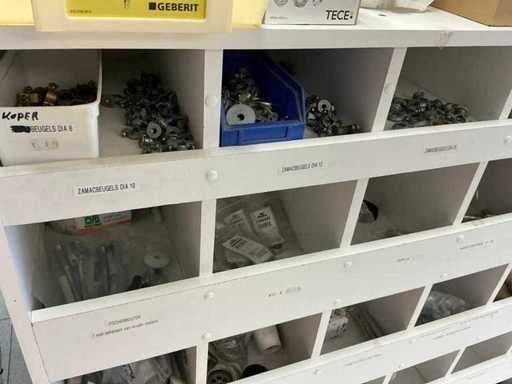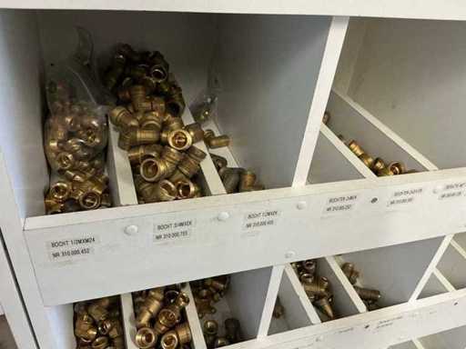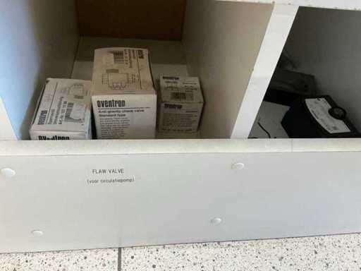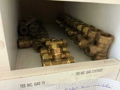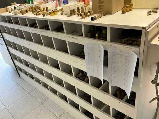 Waaronder koppelingen en overgangen, radiatoraansluitingen, Geberit afvoeronderdelen, Geberit sifons, lekzoekspray, flexslangen, kranen, afdichtingstape, radiatorthermostaatknoppen, beugels,ontluchters,….. inhoud zie foto’s.