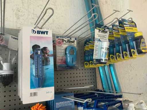 circa 140 items, waaronder netjes, borstels, chloor, pH-produkten, thermometers, ….