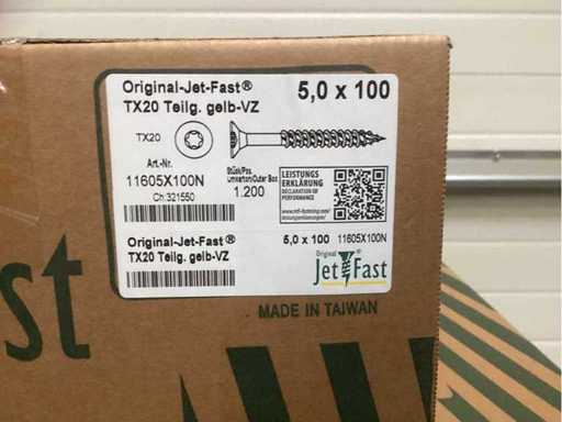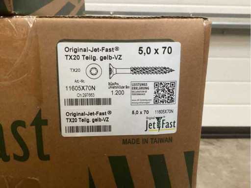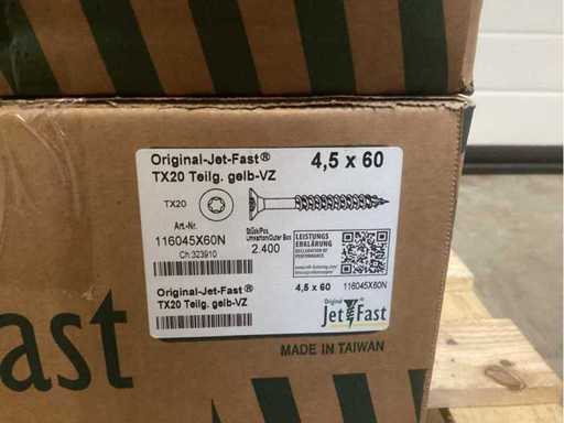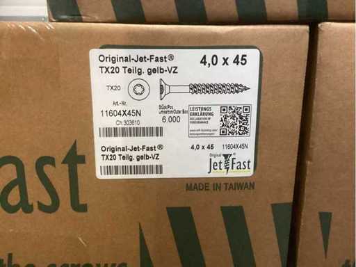 Jetfast verzinkt 16800 stuks 4x40 6000 stuks 4x45 6000 stuks 4,5x60 2400 stuks 5x70 1200 stuks 5x100 1200 stuks