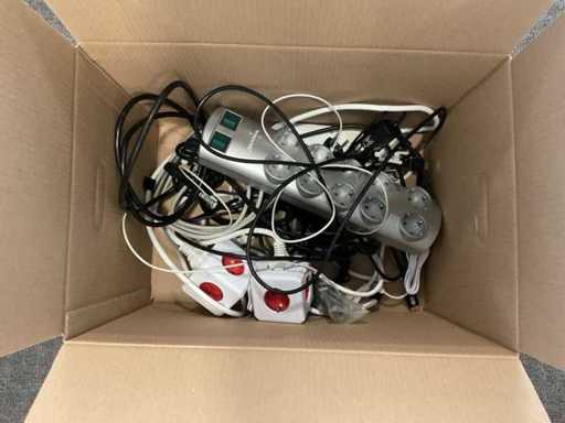 Bestaande uit telefoon laders, verlengsnoeren, HDMI kabels, laptop laders