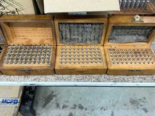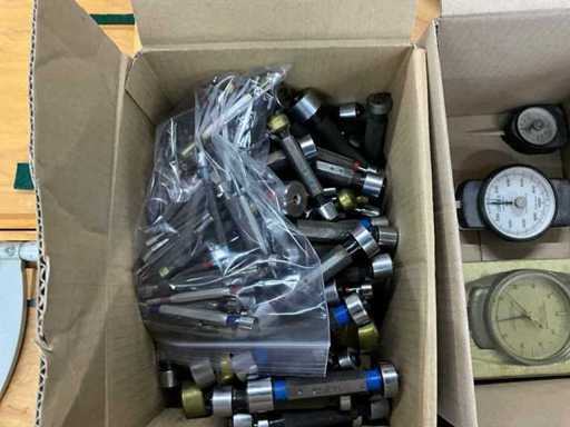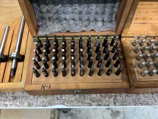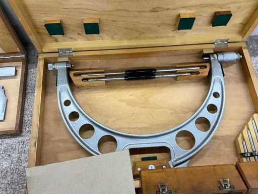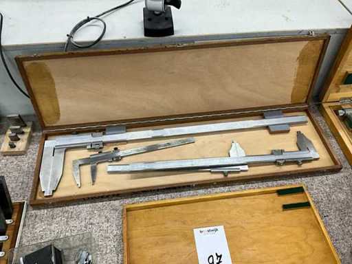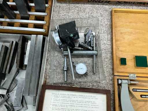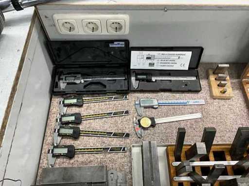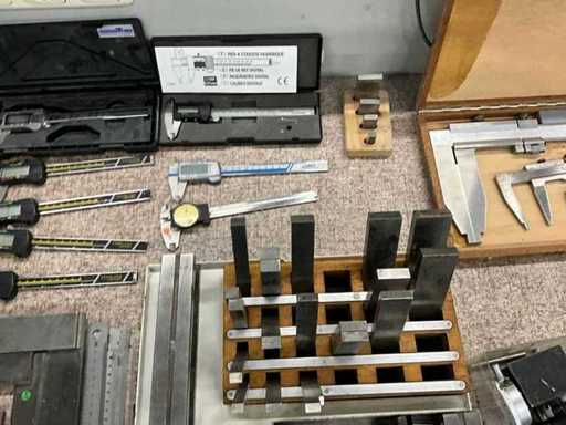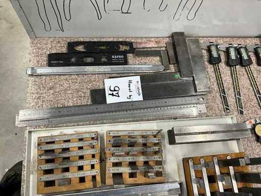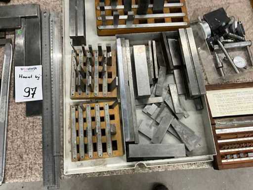 Bestaande uit: buitenmicrometers, eindmaten, schuifmaten 15-75cm, winkelhaken, linialen en divers ander meetgereedschap.