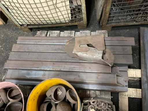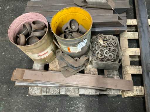 Bestaande uit onder andere: ijzeren platen, bewerkte strips, kokers. Op 4 pallets.
