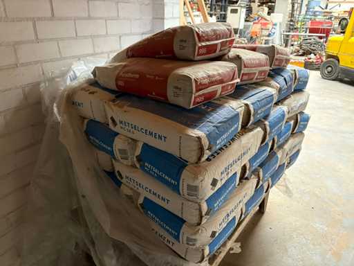 Circa 35x 25kg metselcement en 4x 18kg lijmmortel