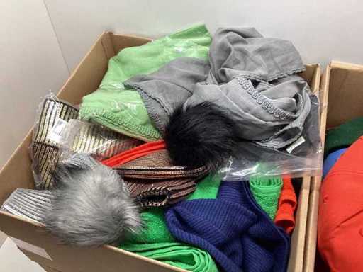 Diverse mutsen, sjaals en petten. Zonder teksten, print loos