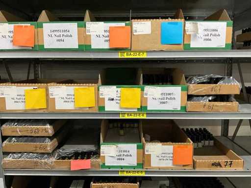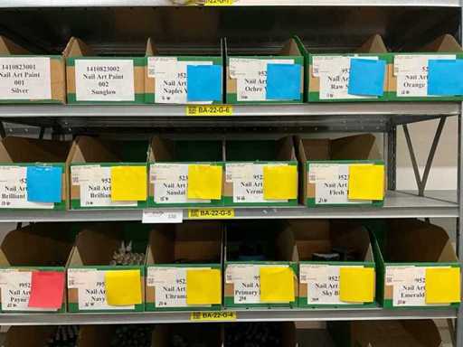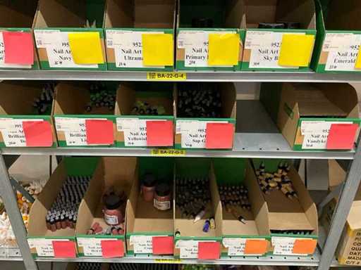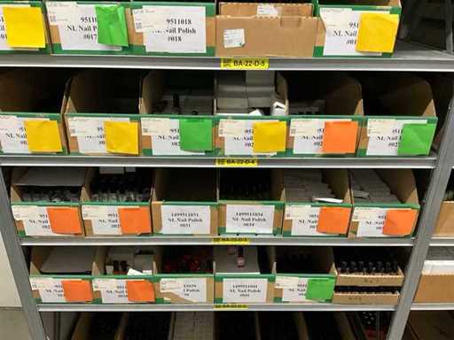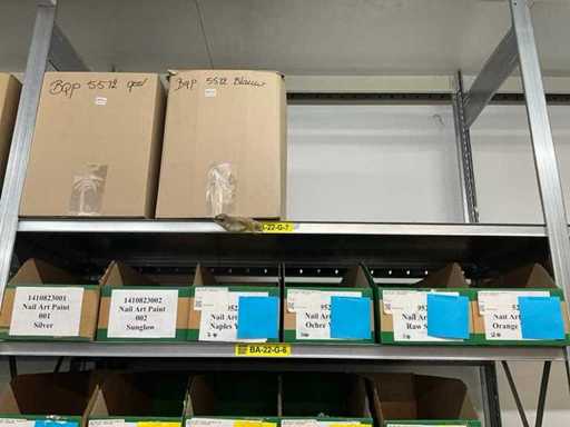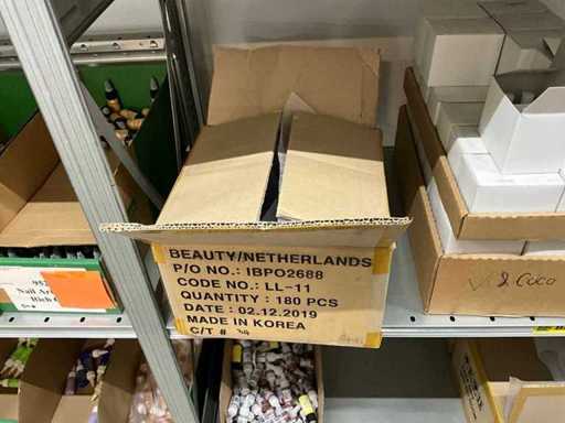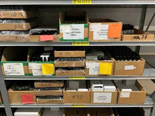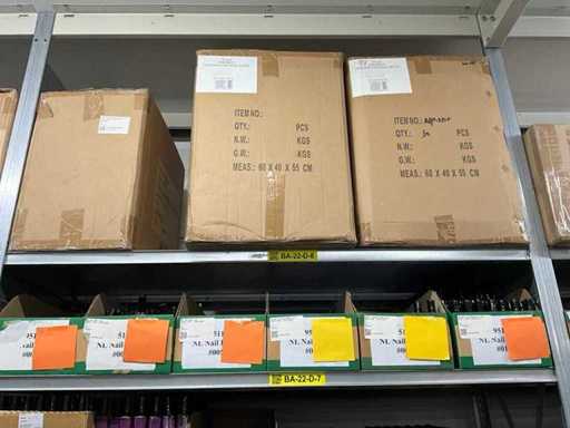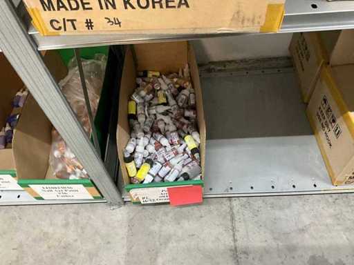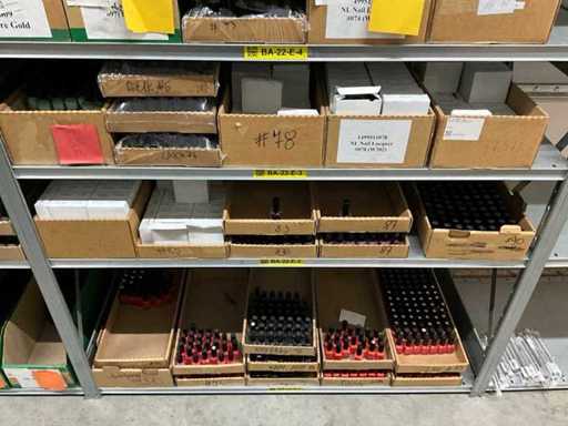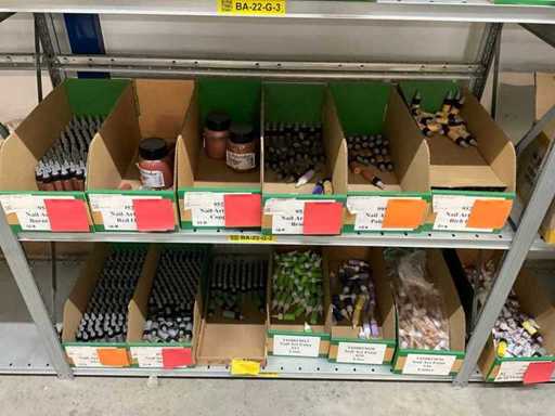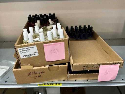Diverse kleuren, voornamelijk zonder label; bestaande uit: nagellak, armsteunen, spons, etc; uit legbordstelling