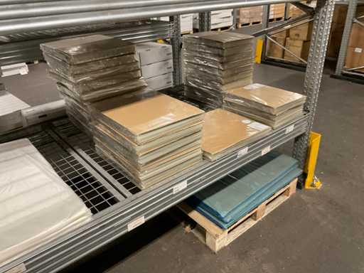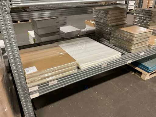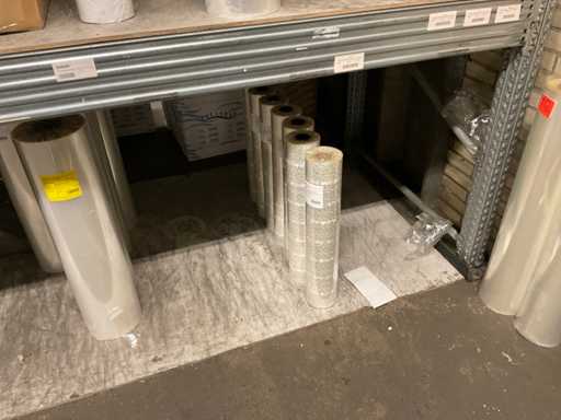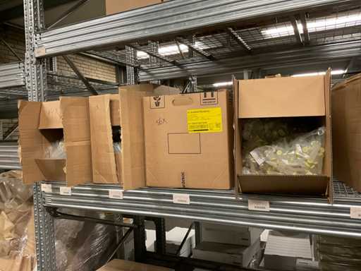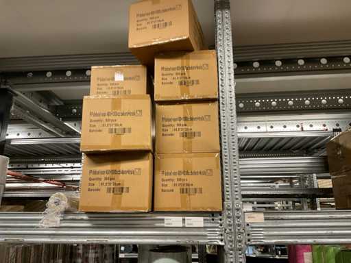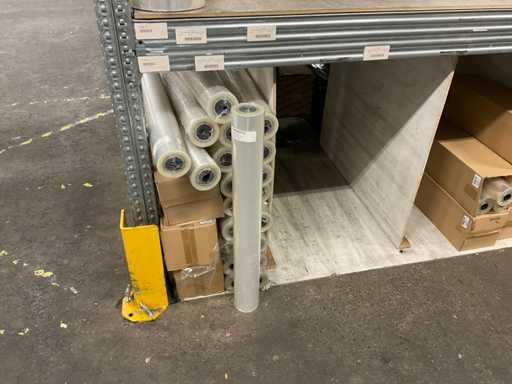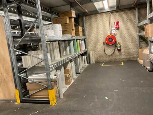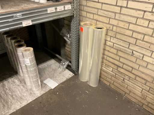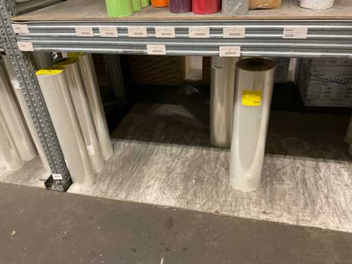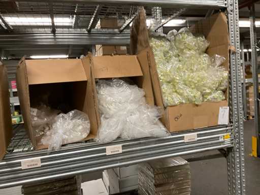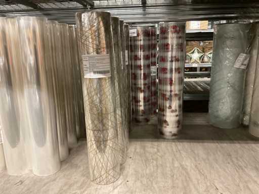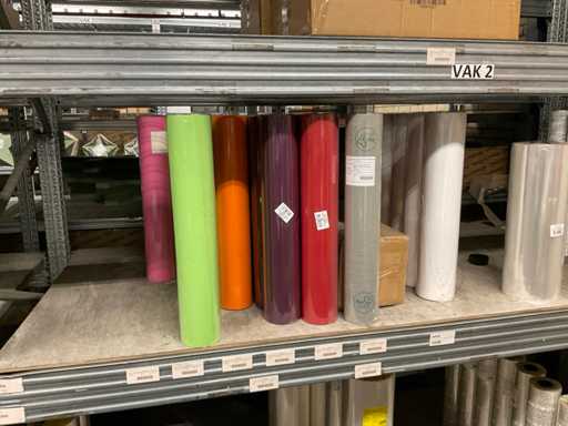Inhoud van 2 zijdes van stelling bestaande o.a. uit opp folie in verschillende kleuren en Anthuriumfleskes, exclusief stelling