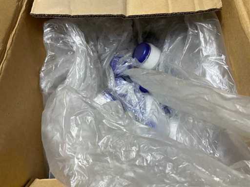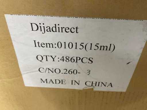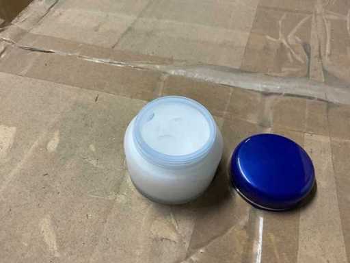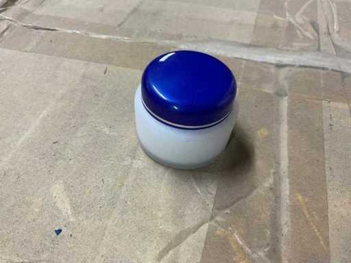 Inhoud potje met blauw deksel 15 ml. Op 2 europallets.
