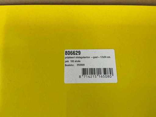Partij prijskaarten etalagekarton geel 17x24cm (23400x)